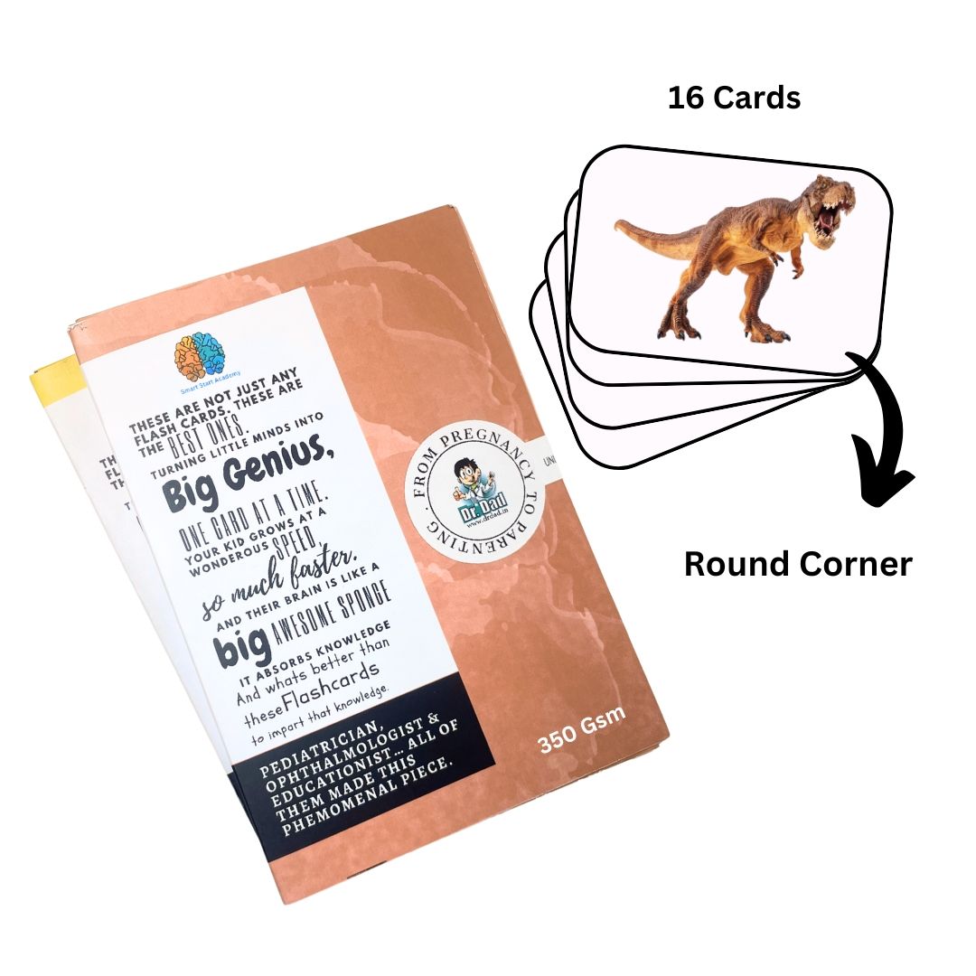 Dinosaurs Flash Cards for Kids – Glenn Doman Inspired Vocabulary Builder (16 Double-Sided A6 Laminated Cards)